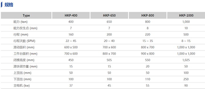HKP冷鍛壓力機系列是以肘桿式機構(gòu)方式驅(qū)動,因此滑塊速度在 下止點附近放緩呈現(xiàn)獨特的滑塊運動曲線,不僅適合生 產(chǎn)精整、精壓等精密壓縮加工,也適合在低噪音、低震 動下生產(chǎn)冷鍛產(chǎn)品的壓力機。